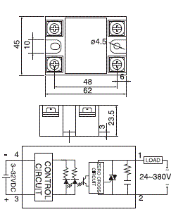 四. 單相固態(tài)繼電器外形尺寸和安裝接線圖:(單位:mm)