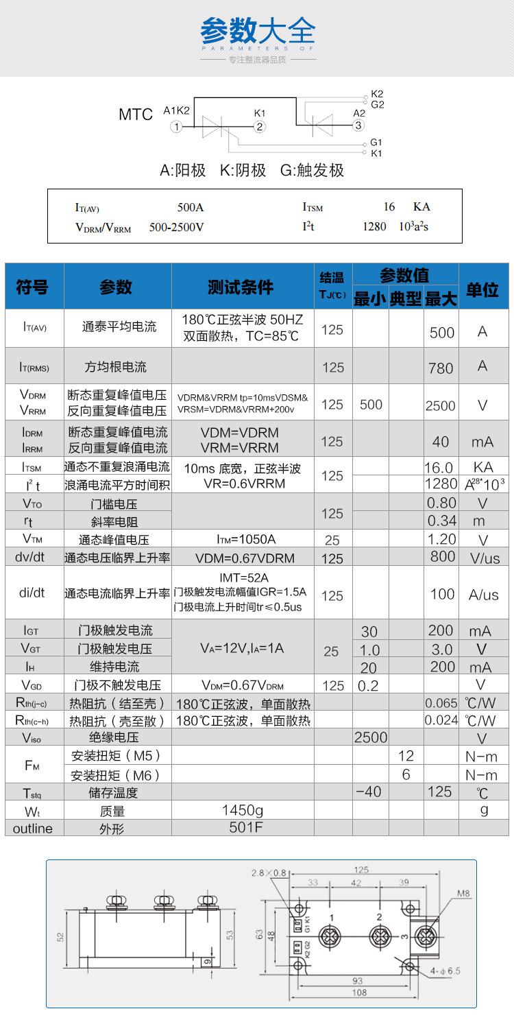 6、其它模塊,這里指的是電焊機模塊,分為整流以及可控兩類,整流電焊機模塊國內型號:MDG和MDY,其中MDG是共陽的,MDY是共陰的,電流50-300A,電壓:100-1600V。電焊機可控模塊國內型號:MTG(可控的電焊機模塊只有共陽的),電流50-200A,電壓:100-1600V。